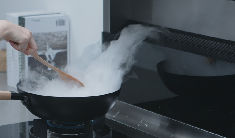 抽油煙機(jī)一般是安裝在頭上,是把油煙聚集到頂部。但是,集成灶采用側(cè)吸下排的方式,運(yùn)用微空氣動(dòng)力學(xué)原理,利用下沉空氣施壓形成負(fù)壓區(qū),把油煙聚集到底部被吸走。采用這種方式,油煙的吸凈率甚至超過99%。