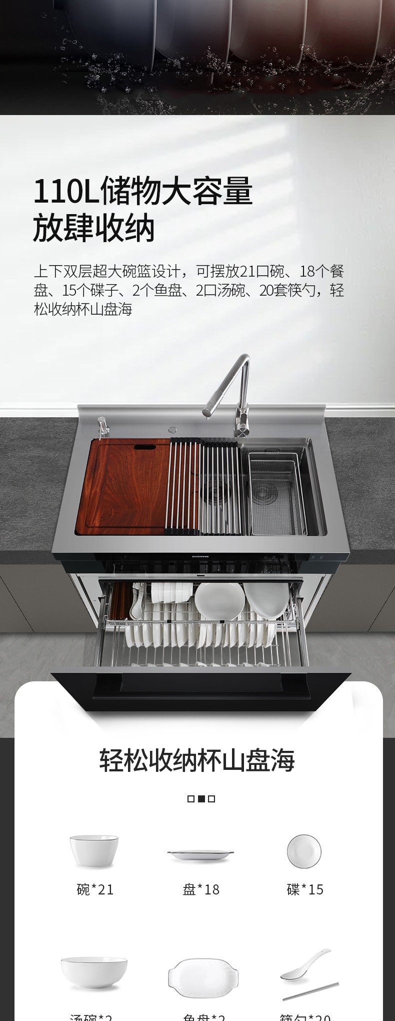 110L消毒儲物空間,輕松收納杯山盤海