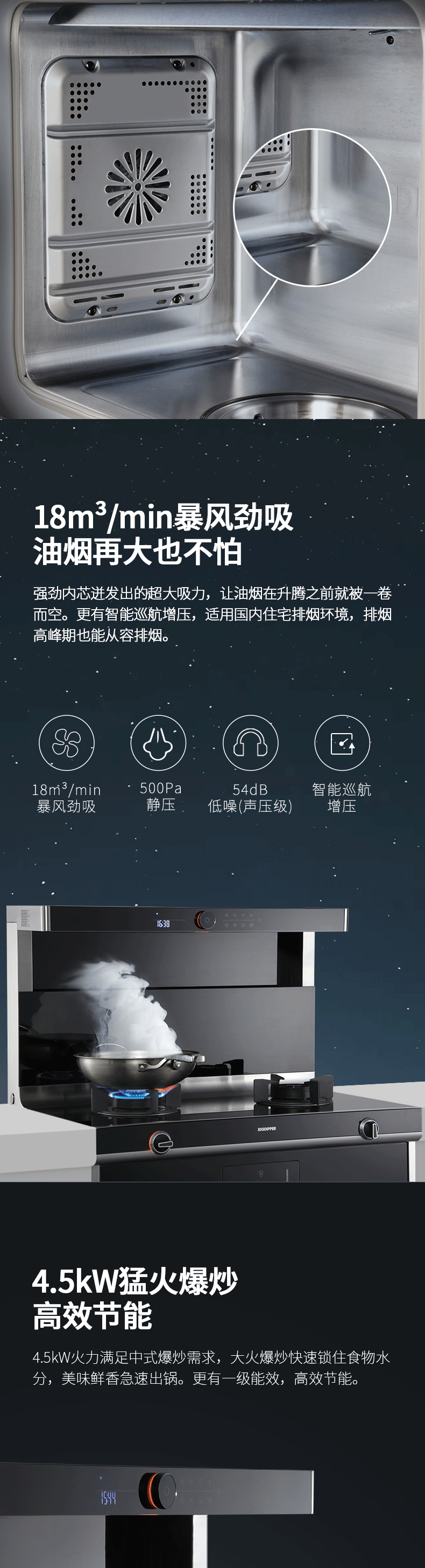 18m³暴風勁吸,瞬排油煙不跑煙